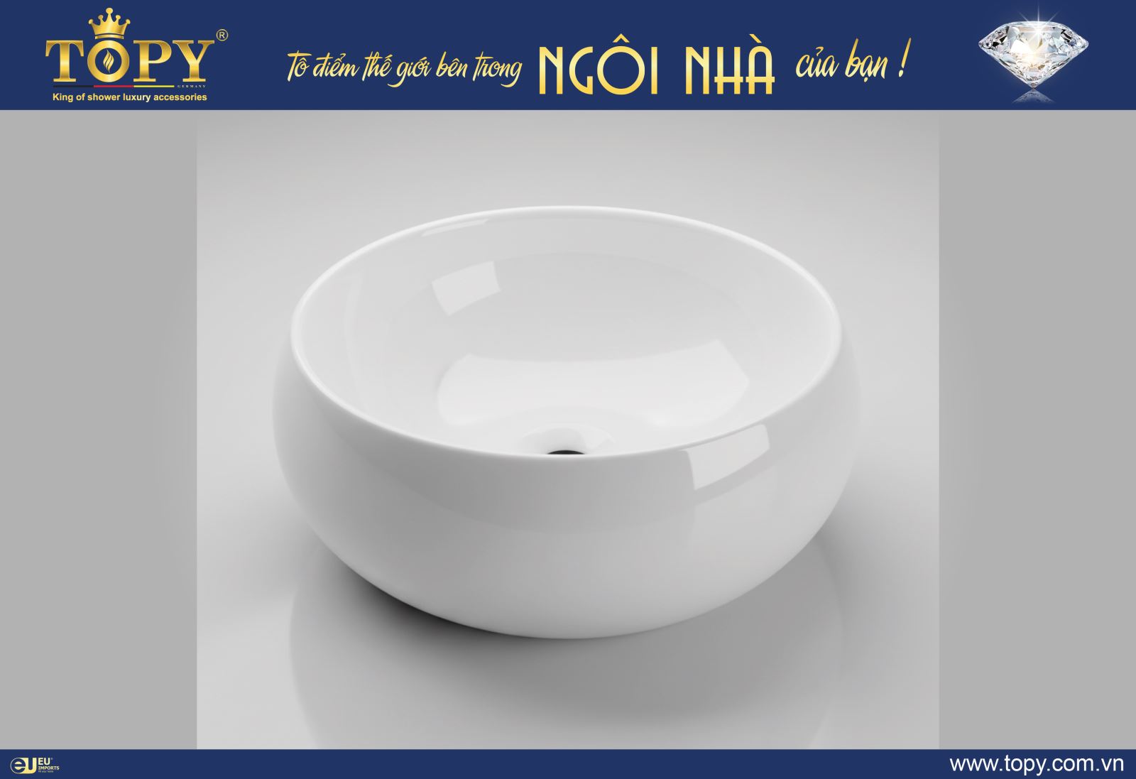 - Chậu TOPY đặt bàn tròn trắng cao cấp
