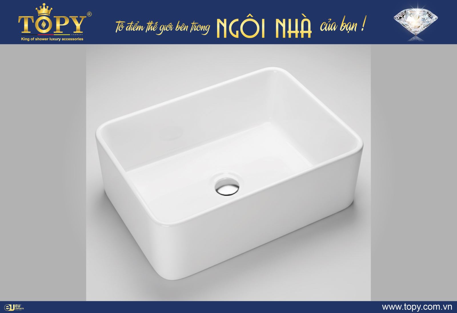 Là mẫu TOPY đặt bàn đá tạo sự sang trọng đồng bộ,lòng chậu sâu rộng tạo sự thoải mái cho người dùng.